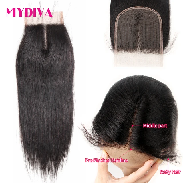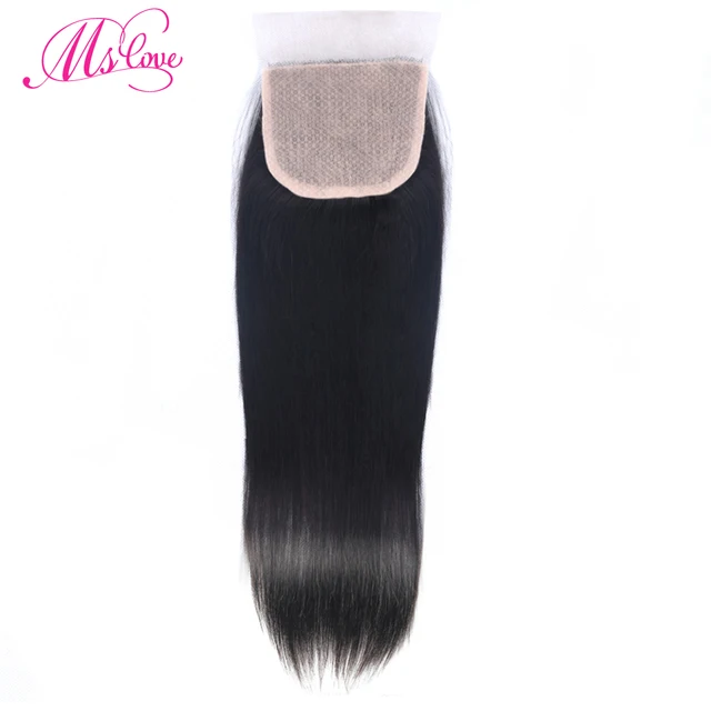 4×4 Simulation Sterile Lace Closure Silk Base Human Hair Closure Brazilian Hair 5 Layers Non-Remy Straight Closure Only Ms Love