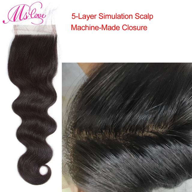 5-Layers 4×4 Simulation Sterile Lace Closure Silk Base Body Wave Human Hair Closure Brazilian Hair Non-Remy Closure Only Ms Love