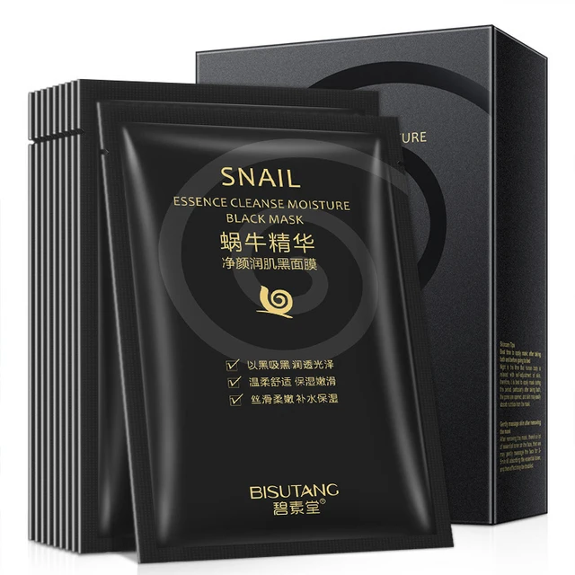 10 Pieces Snail Essence Net Facial Muscle Black Mask Moisturizing Exfoliating Skin Care Skincare Collagen Face Disposable