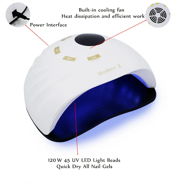 120W LED UV Lamp Nail Dryer LED Nail White Light Nails Gels Manicure Machine with Timer Button LCD Screen Nail Art Tools