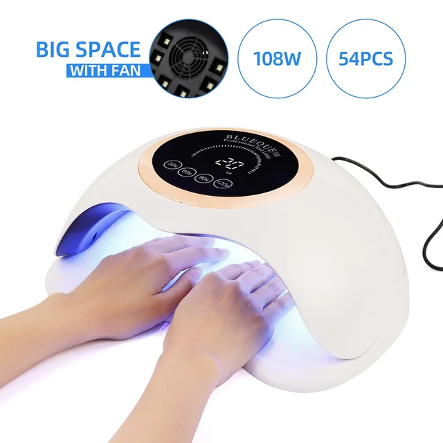 108W 54LED Lights High Power Nail Dryer Big Nail Lamp Tow Hand Fast Drying LED Nail Lamp UV Gel Polish Curing Lamp Nail Art Tool