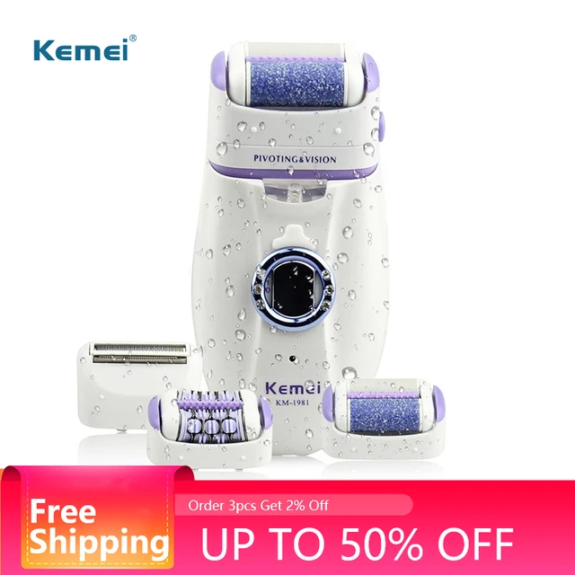 Kemei 3 in 1 Electric Epilator For Women Electronic Foot File Female Depilation Machine Rechargeable Hair Removal